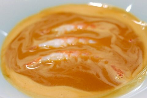 食べ歩き ,それはエビなのに、熟したマンゴーを感じさせた。 シラサエビ(ヨシエビ)のビスクである。 他のビスク同様、甲殻類の凝縮したうまみを感じるものの、重さが一切ない……
