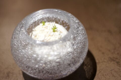 食べ歩き ,これポテサラである。 蕎麦屋のポテサラである。 上に半透明の、小さな実のようなものが乗っている 「ああ、蕎麦屋だから蕎麦の実を乗せたのか。面白いな」と、判断し……