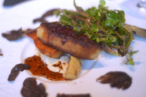 <ラブランシュのスペシャリテ3> 旬とは季節の切り取りである。 料理人は、一瞬の出会いを見逃さず、昇華させる。 「筍とフォアグラのソテ」は、春のひとときだけ出……