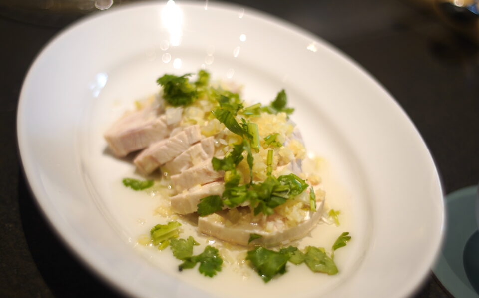 2.白切鳥 ほうき鳥胸肉の蒸し物 葱生姜ソース