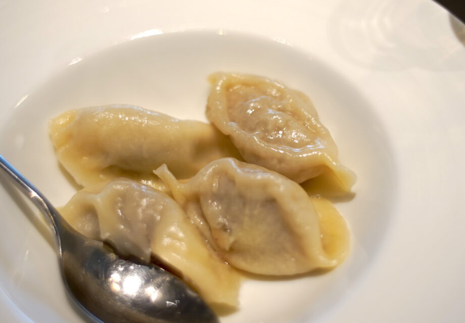 8.日本でここだけ、ジビーフと玉ねぎ、佐助豚と海老とニラの水餃子 国領「吉春」謹製
