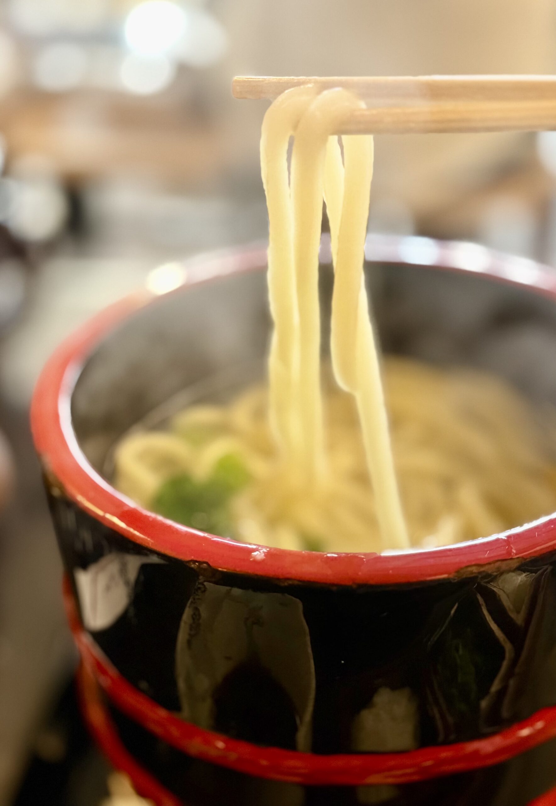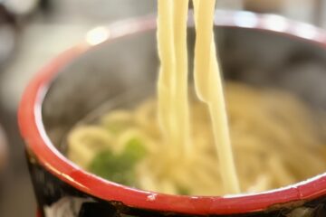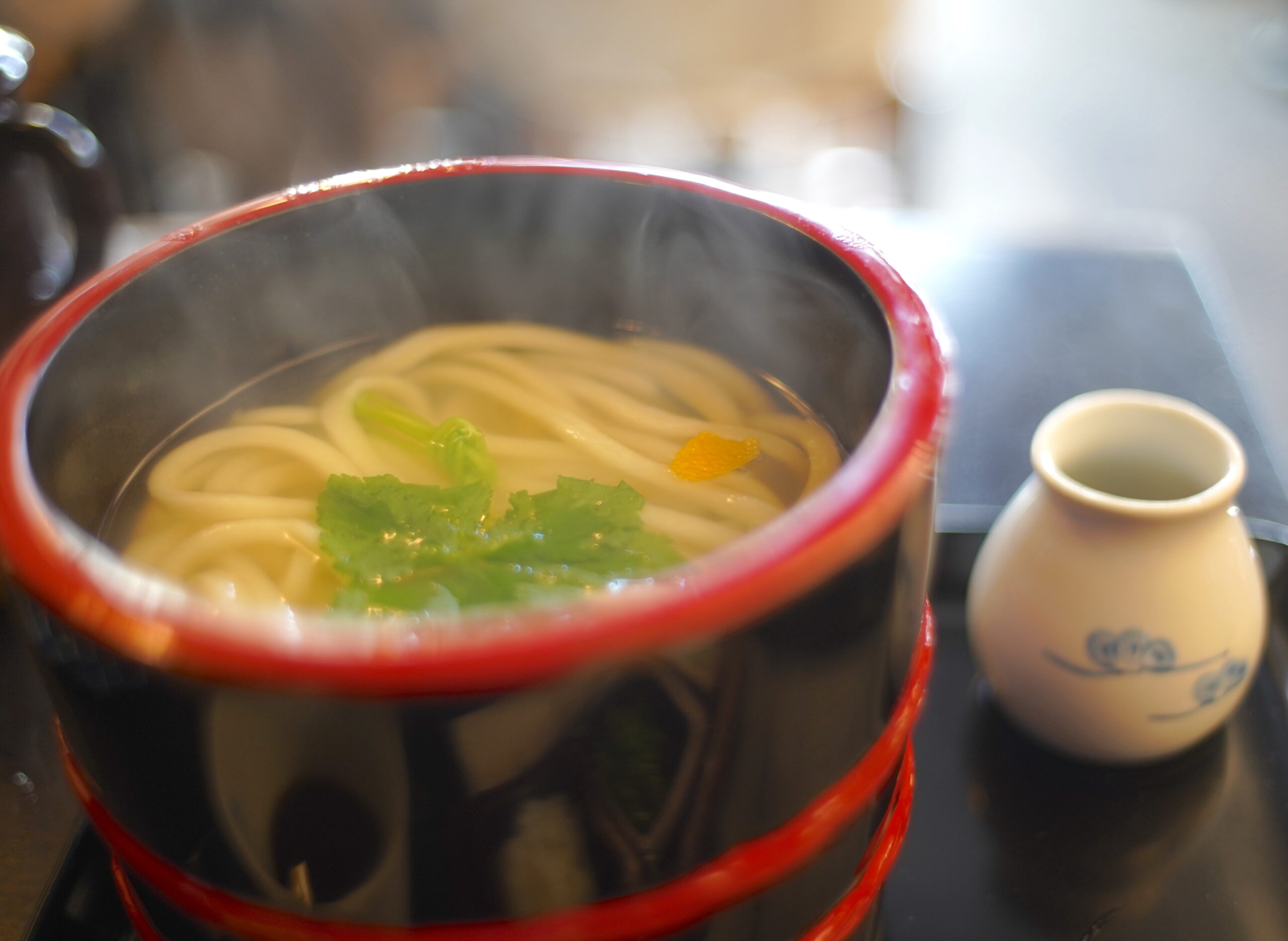 持ち上げたうどんの艶が、湯気の中より誘いかける。
