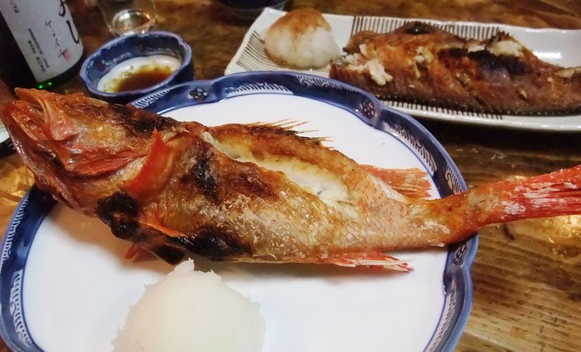 きんき 2012.12.23 食べ歩き , 和食 , 白身魚 , 居酒屋 , 宮城 , Tweet ご主人は、魚に合わせて串を作り、炉端で焼く。その串と、正確な眼力で焼かれた魚たちは、生き生きと舌に迫った。 真骨頂がきんき。 香ばしく焼かれた皮をバリッと齧れば、余分な水分だけが抜けて甘味が凝縮された身に、脂の旨味が覆いかぶさってくる。 ははっ。 あまりのうまさに口を開けたままになる。 身をつついた後の皿に湯を注げば、極上のスープが出来上がる。 日本最高峰の焼き魚よ再び。 気仙沼「福よし」の復活を心から祈る。