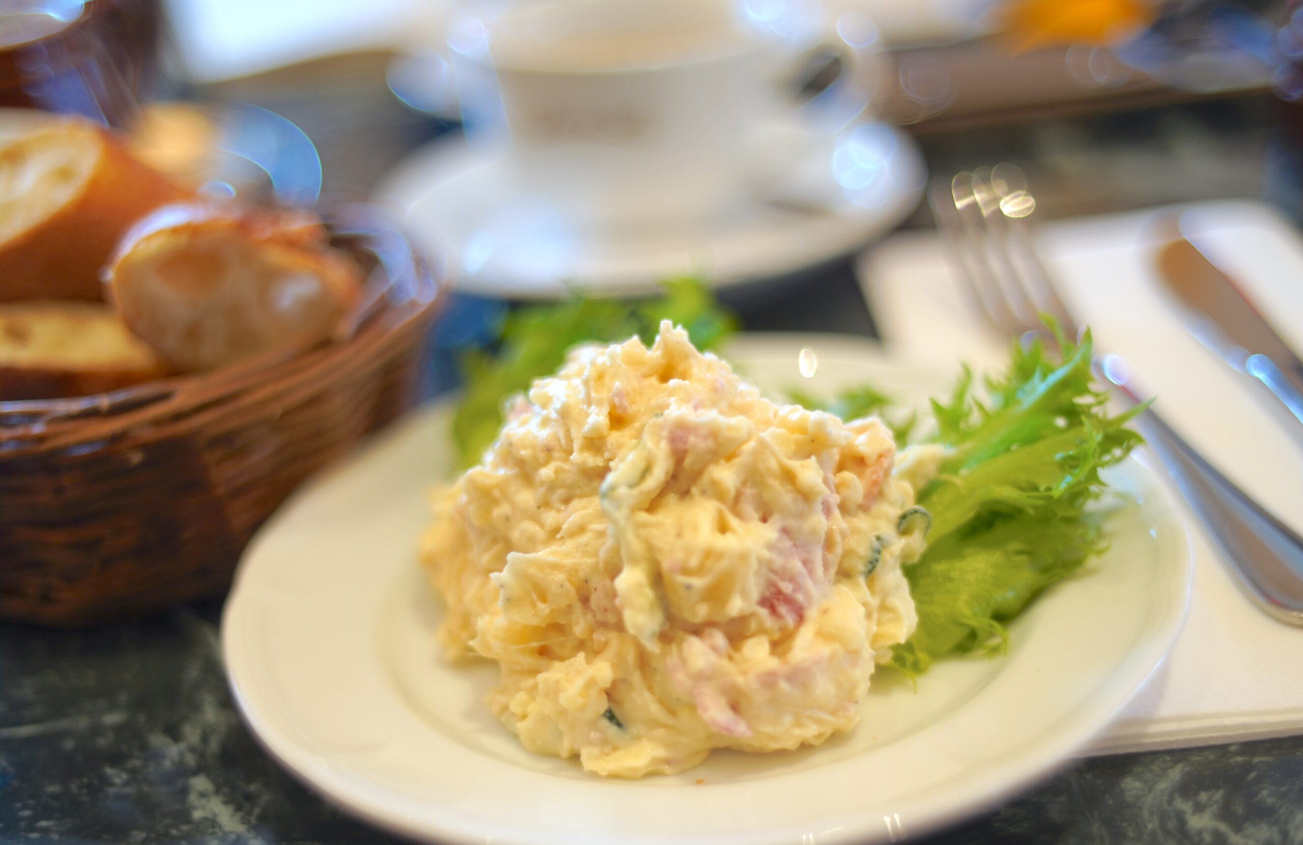 こちとらはお昼を食べてしまっていたが、メニューにポテトサラダを見つけ、ポテサラ研究家としてはつい頼んでしまった。