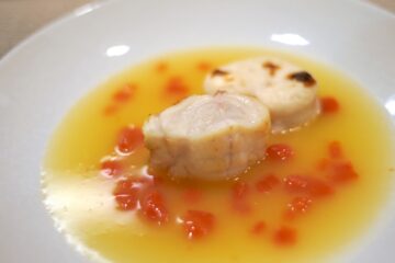 河豚のアクアパッツァだという。