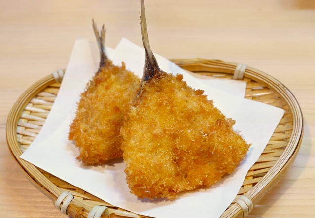 小アジのフライは、カリッと軽快な音を響かせ、アジの香りが口いっぱいに広がっていく。