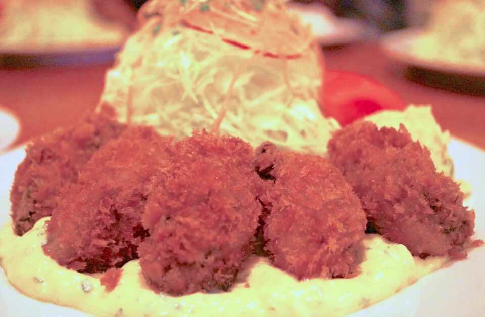 カキフライはいつが美味しいか・ 2012.01.23 食べ歩き , 東京 , 貝類 , 揚げ物 , 洋食 , Tweet 「カキフライ始めました」。 秋になると、この文が現れる。 しかし、食べたいっという気持ちを抑え、翌年まで我慢する。 そこで想いを一気に爆発させるのである。 しかも年末より一月の牡蠣は、さらに旨味を増すというではないか。 カリッ。 熱々の衣を噛むと、ミルキーな海のジュースがこぼれ出し、思わず笑う。 最初はなにもつけずに、次が塩を振ってビール、お次はレモン、最後はウースーターソースをかけて、白いご飯を掻き込むのである。