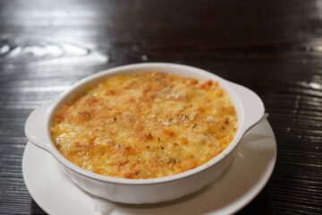 そこへチーズの塩気とコク。白ワインの微かな酸味と香りが加わって、食欲を抱きすくめるのです。