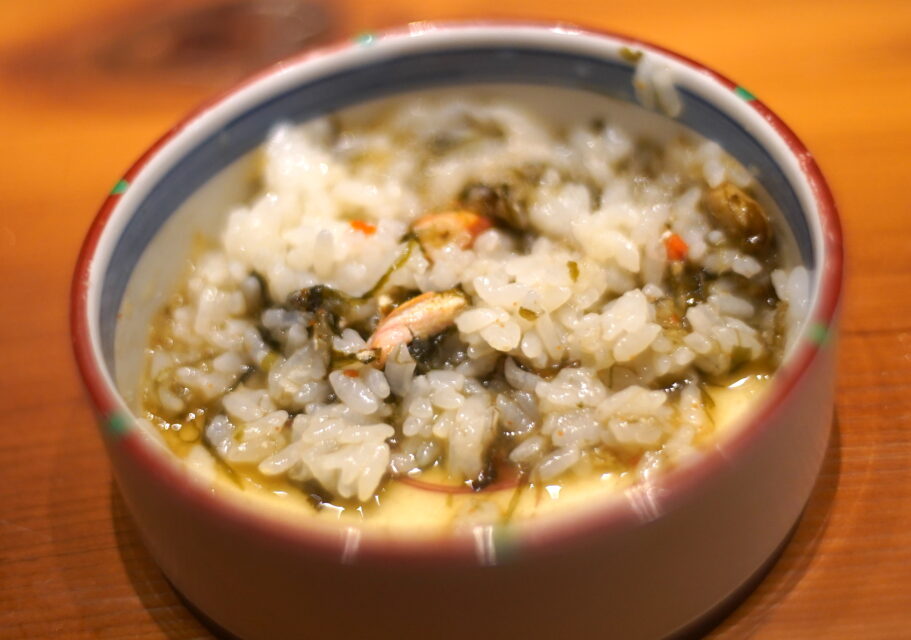 シメご飯が好き。イカとセイコ。 2025.04.24 シメご飯 , 食べ歩き , 和食 , 蟹 , イカ , 福井 , 居酒屋 , ご飯料理 , 海藻 , Tweet キラキラと輝くイカ刺しに醤油をまぶして、岩海苔とともに熱々ご飯に乗せ、ひたすら掻きこむ。 ふふ。 セイコがにと大根おろしを鍋に入れ、味噌で味付けたら。岩海苔を加える。 そいつをご飯にぶっかける 掻き込めば、ざぶんと波しぶきが口の中で舞うのだな、 福井「ななと実」にて