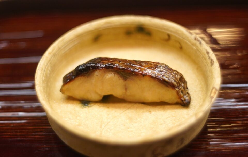 金沢「木佐貫」 氷見の黒むつ幽庵焼き ダレずにキリリとして身の爆ぜる感じが素晴らしい。地の塩梅もいい