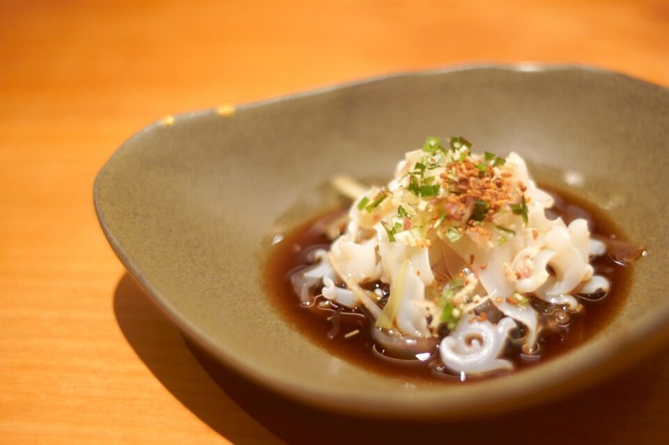 岡山「はすのみ」 ハリイカと自家製はるさめ、セロリ 黒酢ソース
