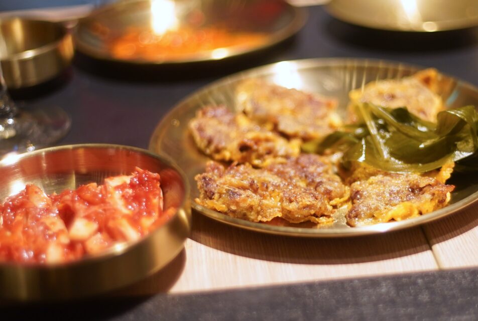 カレー混ぜご飯が石焼となり、薄焼き卵は鍋の縁に沿ってある不思議