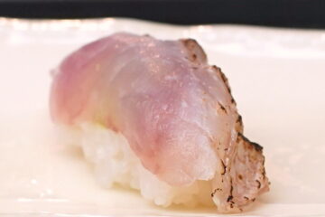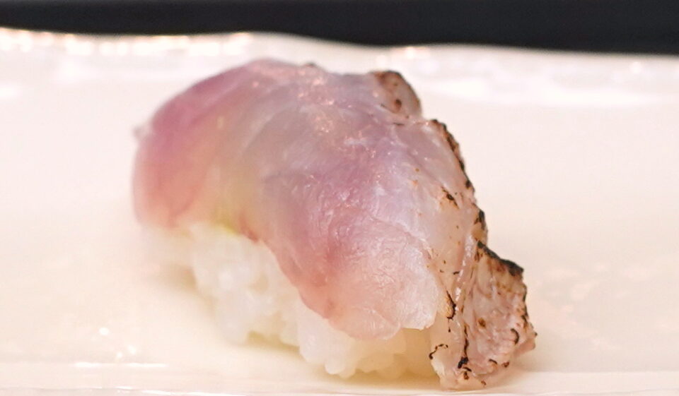 福井市「初味寿司」 甘鯛の炙り寿司 皮と皮下のコラーゲンがいい