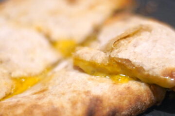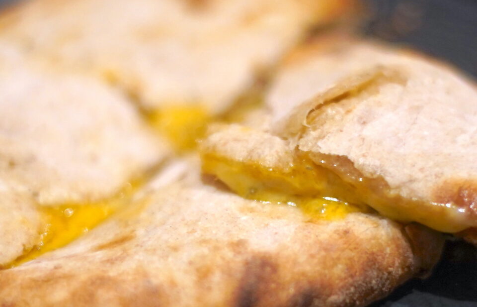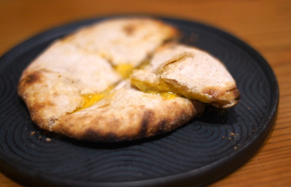 チーズクルチャが作りたくて店を始めました。 2025.10.10 食べ歩き , 札幌 , インド料理 , バターチーズ乳製品 , パン サンドイッチ , Tweet 十勝中川さんが作った、無農薬スペルト小麦の生地によるチーズクルチャ。 まず生地がなんともいい。 甘い小麦の香りがして、噛み締めるたびに笑顔が出る。 チーズは、#幸せチーズ工房のラクレットと 富田ファーム おこっぺの 黄色いブルーチーズ シャンパンブルーを入れたクルチャ。 ナッツのような香りと、チーズの深いコクか、熱々のまま攻めてきて、たまりません。 札幌「みち草バザール」にて。