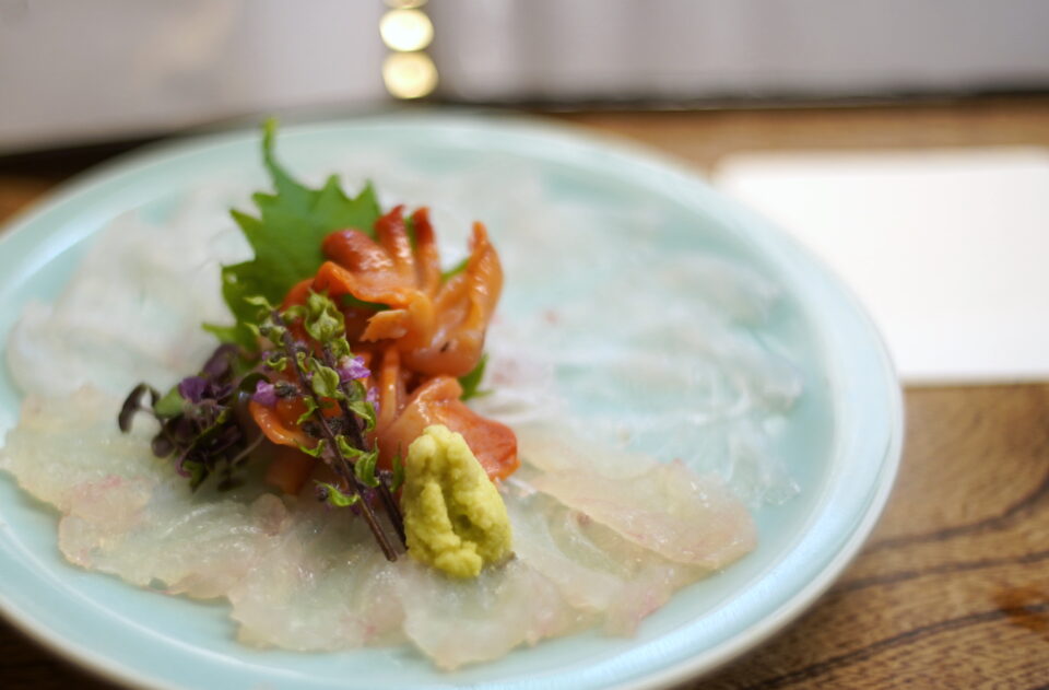 お造りは、ヒラメとオコゼの薄造りと赤貝を盛り合わせてもらった。品のある甘みを流すヒラメと、シコっとした食感からしぶとい甘みを感じさせるオコゼ、香り高い赤貝の組み合わせが良く、酒が進む。