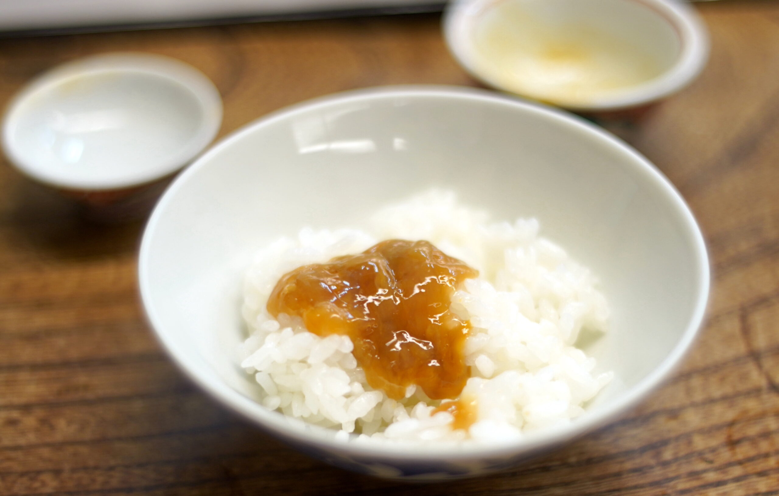 食事は、このわたを半分残しておいてご飯を一口もらい、乗せて食べた。