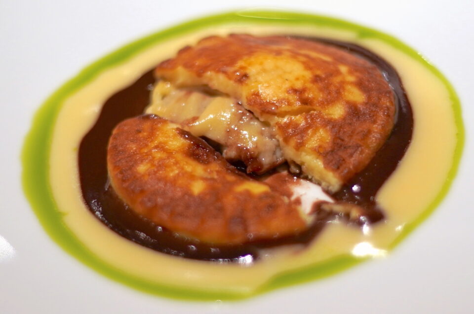 宇都宮「オトワレストラン」鮎のクレープボナジェンヌ 鮎の内臓と赤ワインのシヴェとブールブランソース