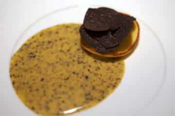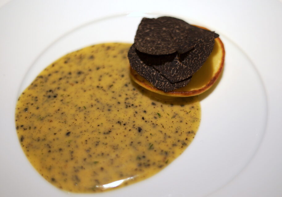 八丁堀「ジャルダンドカモ」オマールのスフレ ビスクソース トリュフとレモンクリームのタルティーヌ