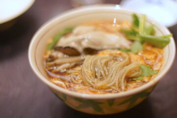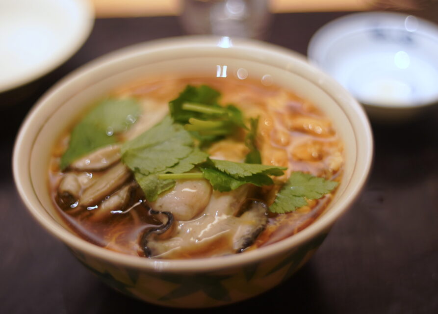 早稲田「汐見」 冬の種物。 2025.12.11 食べ歩き , シメご飯 , 東京 , 卵 , 貝類 , そば , Tweet 牡蠣とじそば。 柿が豊かな味。卵の閉じ具合、そばの細さ、温かくなっても香りある。よし。 早稲田「汐見」にて