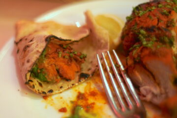 そのまま齧り、途中からチャパティで包んで食べるのがいい。