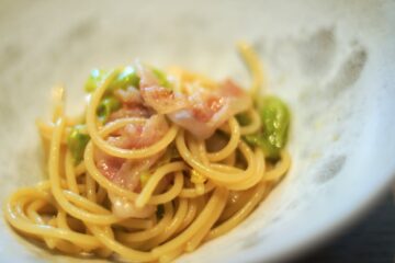 パスタで来た。春キャベツとグアンチャーレ。鳥だしと八角。