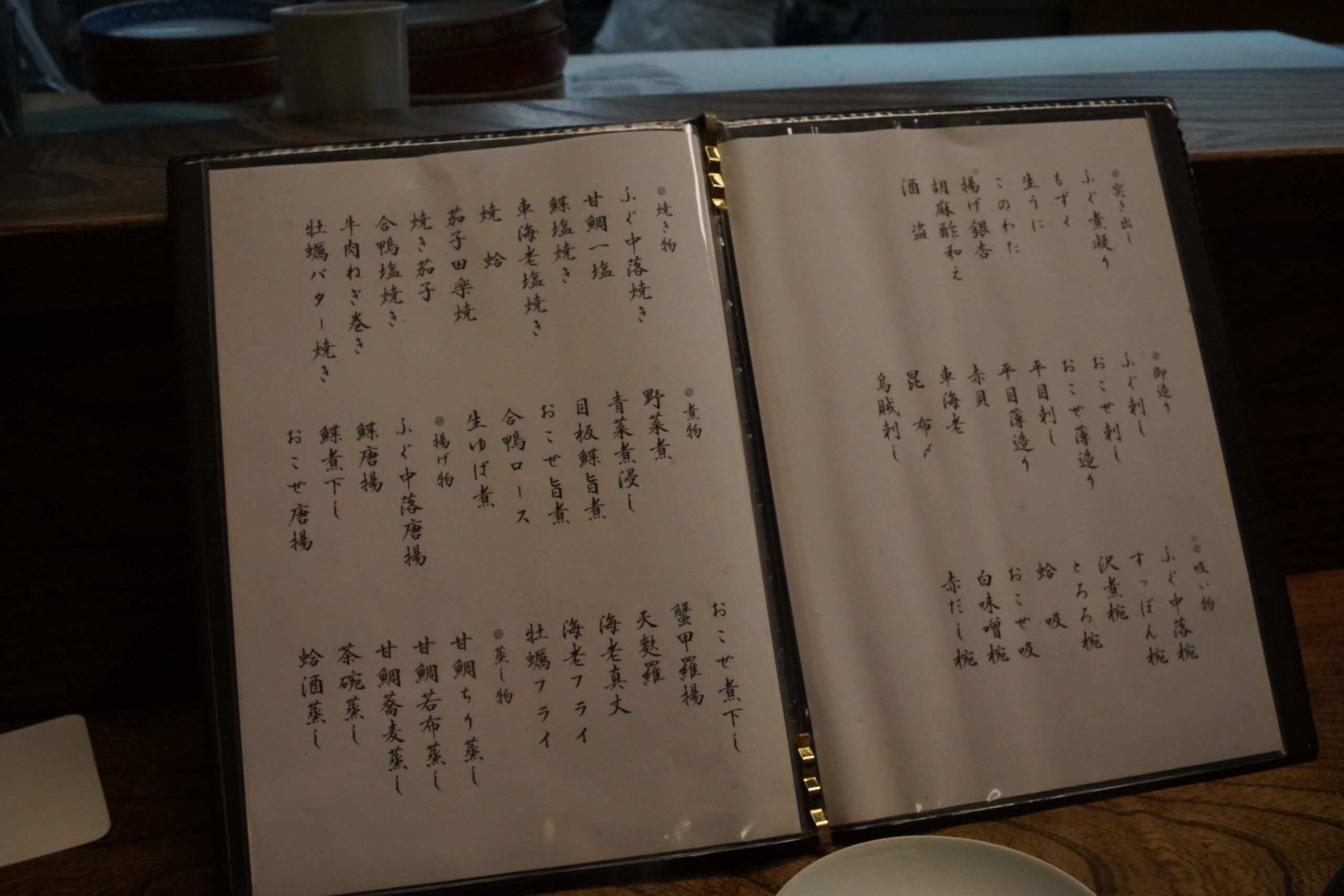 付き出し、お造り、吸い物、焼き物、煮物、酢の物とあり、その数は、59種類もあり、食事は11種類用意される。