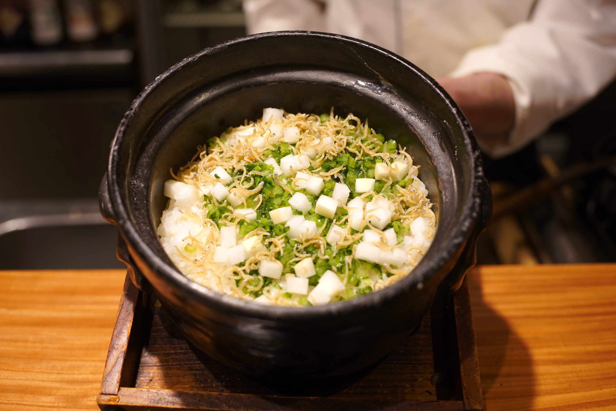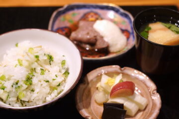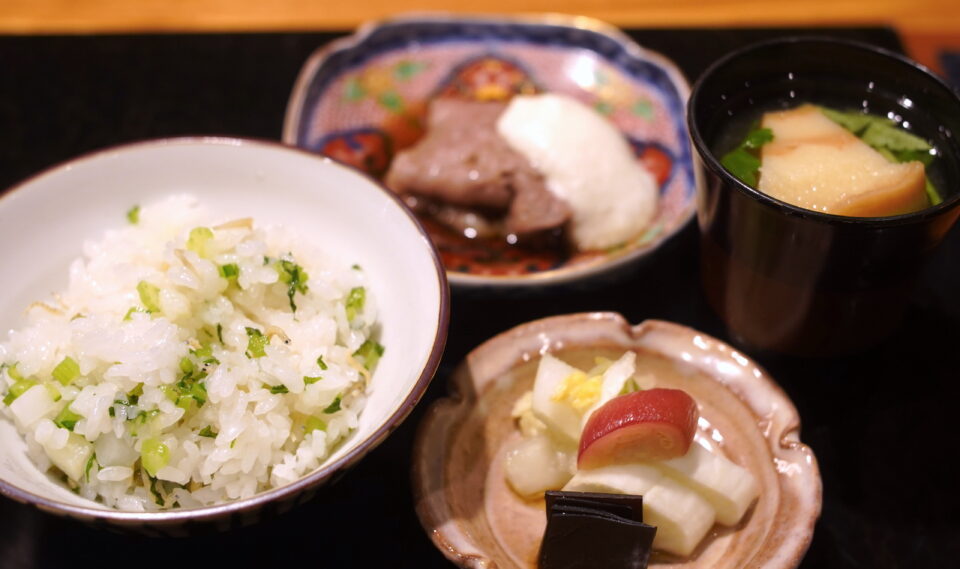 大根と蕪、米を生かす。 2026.01.15 シメご飯 , 食べ歩き , 牛 , 和食 , すき焼き , 新潟 , 根菜 , 割烹 , ご飯料理 , Tweet 新発田の割烹「手紙」の締めご飯「大根と蕪のご飯」歯応えと淡い淡い旨みが米を生かす。素晴らしい。新発田牛のすき焼きと。