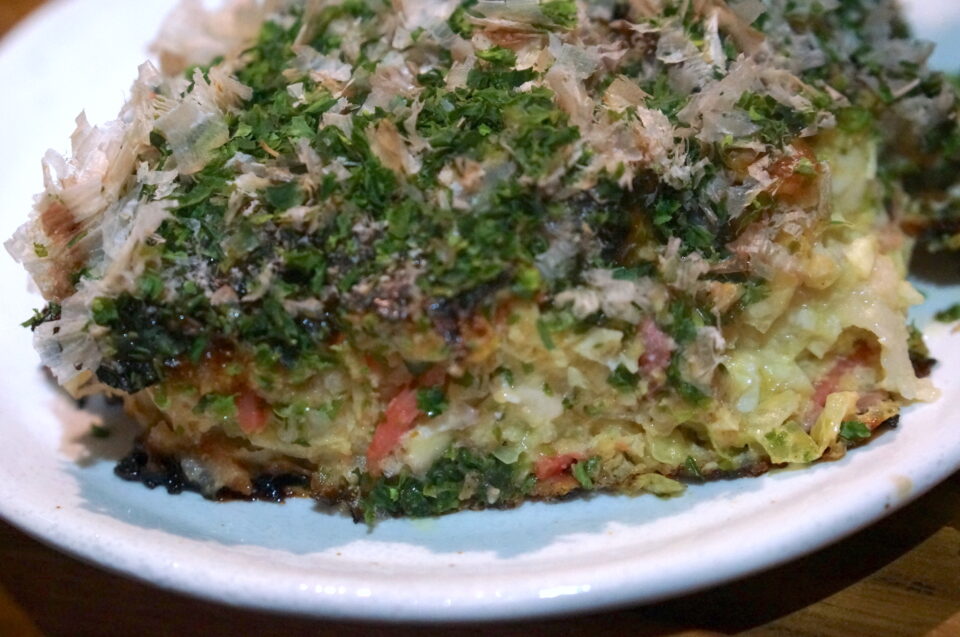 それは、30数年前に開業しようと思ったご主人が、8年間かけて関西のお好み焼きを食べ歩き、2年間試行錯誤して生み出した、珠玉の豚玉です。