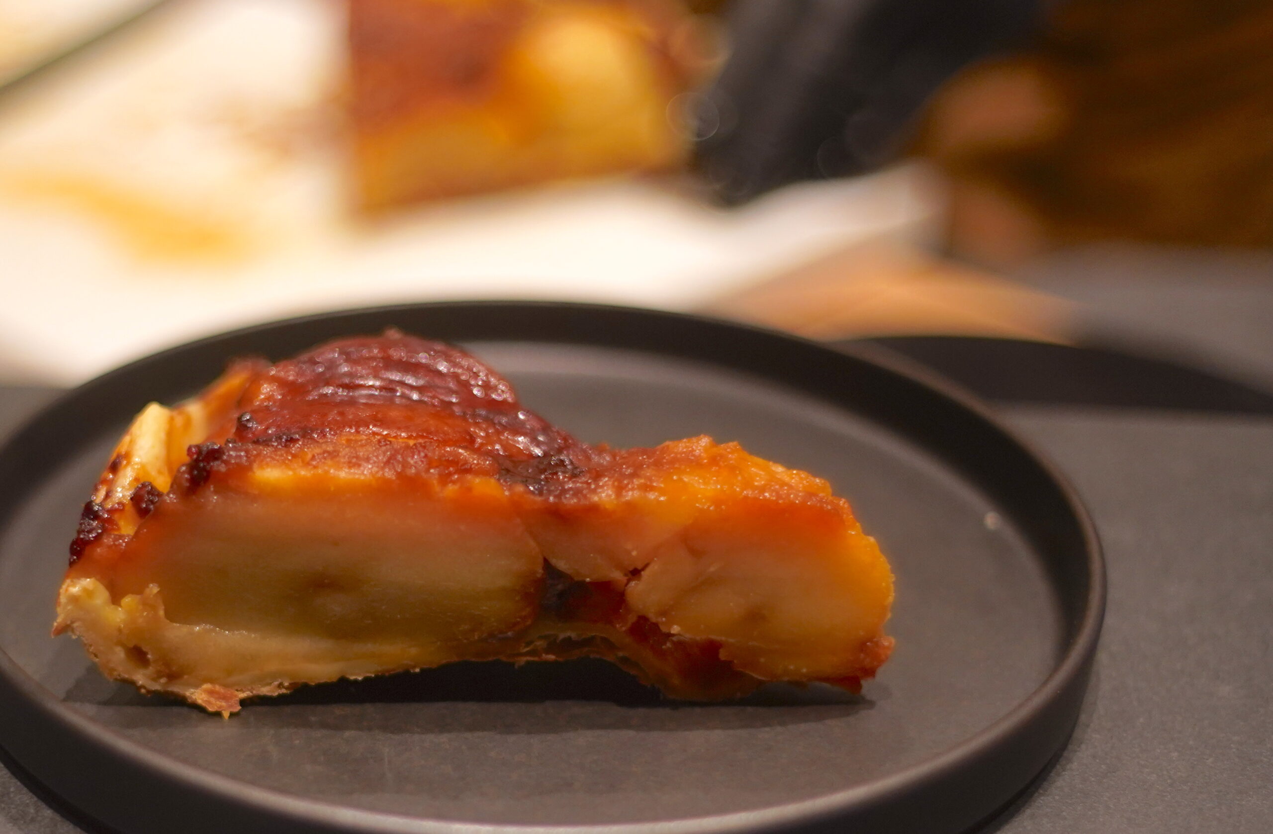 キャラメリゼの香ばしさと濃密な甘さが口いっぱいに広がり、その後からリンゴの果汁が広がっていく。