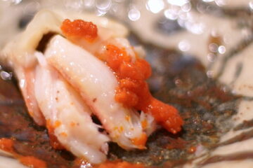 食べれば、メスガニの柔らかな甘みが広がって、心がほぐれ、その陰から内子の濃密な甘みと外子の食感が現れる。