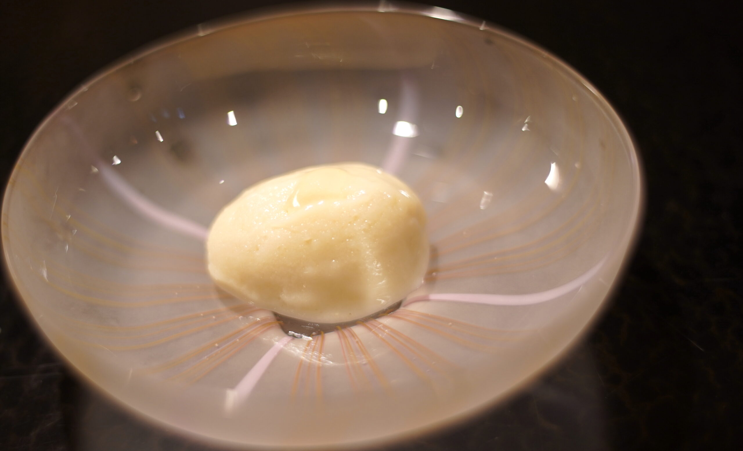 敬具。 2026.01.14 食べ歩き , 1日1甘 , 新潟 , 割烹 , 果物 , スィーツ , Tweet 新発田の割烹「手紙」の甘味 ★甘酒と蜂蜜のアイス追熟したレクチェと林檎が中に潜んでいる。