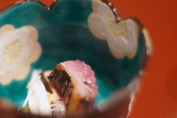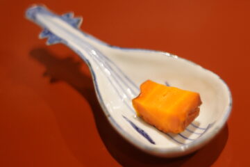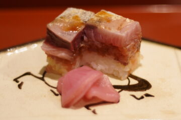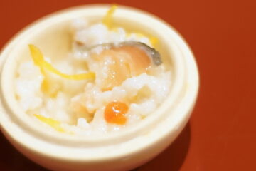熟鮓。鮭と糀、米を二週間ほどはこうさせたもの。そこへ塩引き鮭を水につけて柔らかくしたものと、腹子。柚子