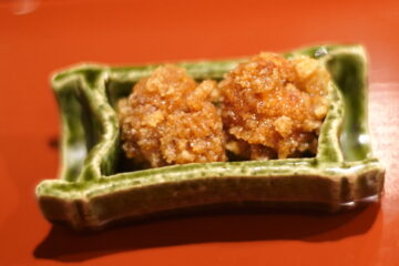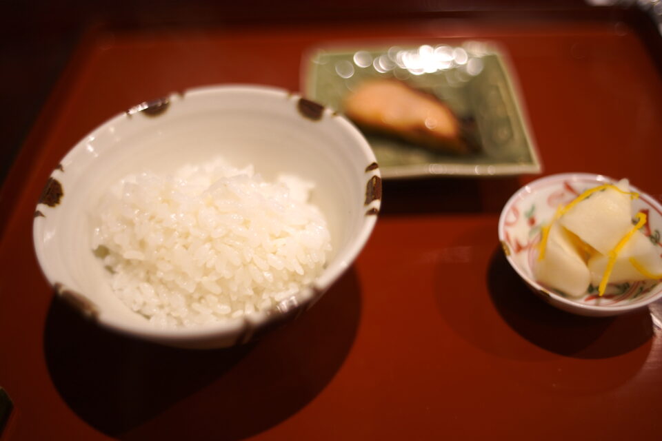村上 「新多久」の締めご飯 2026.01.12 食べ歩き , シメご飯 , 白身魚 , 新潟 , ご飯料理 , ジビエ , 揚げ物 , Tweet 村上 「新多久」の締めご飯 ★ご飯、留椀 自家製塩引き鮭 30回から香りと味がぐんと湧き出てくる 躾のいい味である 決して表にはすぐには出さないが、しぶとい。 村上の塩 村上の米 村上の味噌と麩 猪揚げ物ソースカツ丼風ソースどぶ漬け これまたいい。