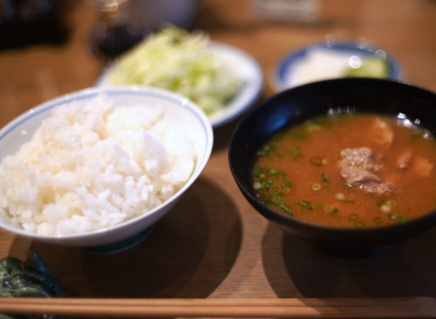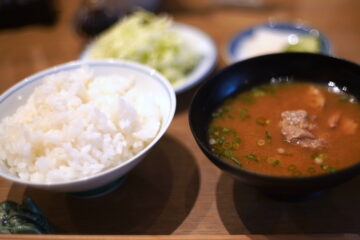 おかわり自由のご飯、豚汁、きゅうりと大根の浅漬け、キャベツ共に、極上ではないが、平均点で、申し分ない。