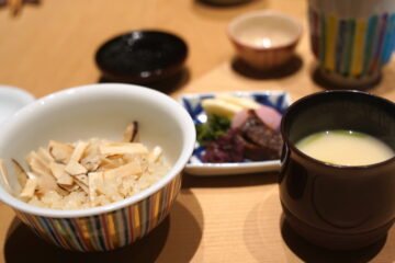 松茸ご飯 2025.10.25 シメご飯 , 食べ歩き , 和食 , 割烹 , 京都 , ご飯料理 , キノコ , しる汁物 , Tweet 京都「浜作」の松茸ご飯。 極めて質の高い松茸ゆえに、淡い旨味がご飯の甘みと奏上して、典雅な気分を呼ぶ。 そして白味噌椀の優しき深み