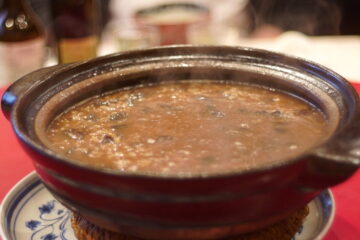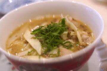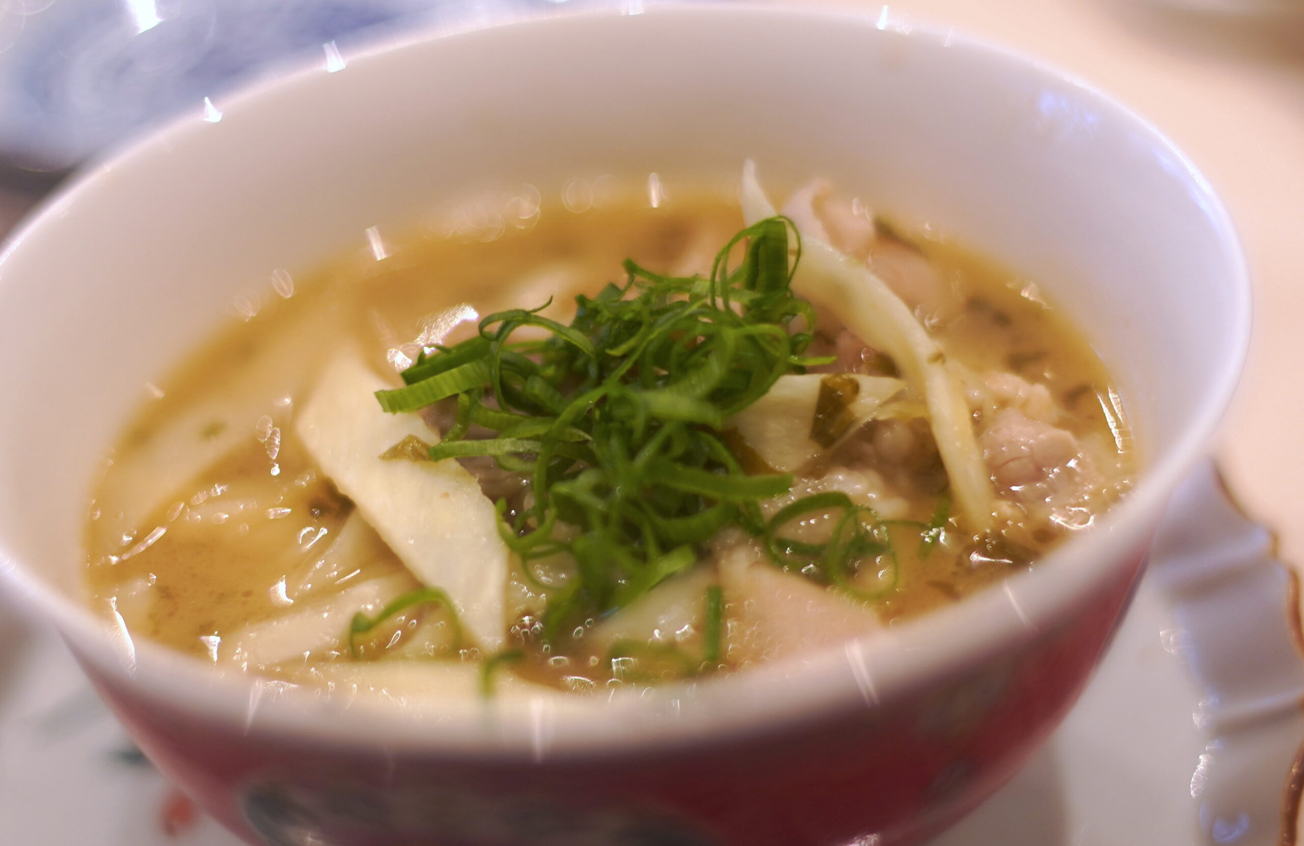 西荻窪「千の孫」 梅州のご飯。福建の麺 2025.12.10 シメご飯 , 食べ歩き , 東京 , 米 , 豚 , 雑炊 おかゆ , ご飯料理 , 中国料理 , 麺料理 , 漬物 , ラーメン , スープ , Tweet 19★老菜鋪砂鍋粥(早田)梅州 古漬け大根のお粥 生姜 だいこんとろとろ 蟹だから生姜、かなり効いている。 18★老杭州片川麵(山口)福建 杭州風雪菜と豚肉の煮込みそば 漬物の酸味と白湯 豚バラ肉の煮込み 雪菜缶詰、春だったら筍、豚バラ肉の煮込み 西荻窪「千の孫」にて