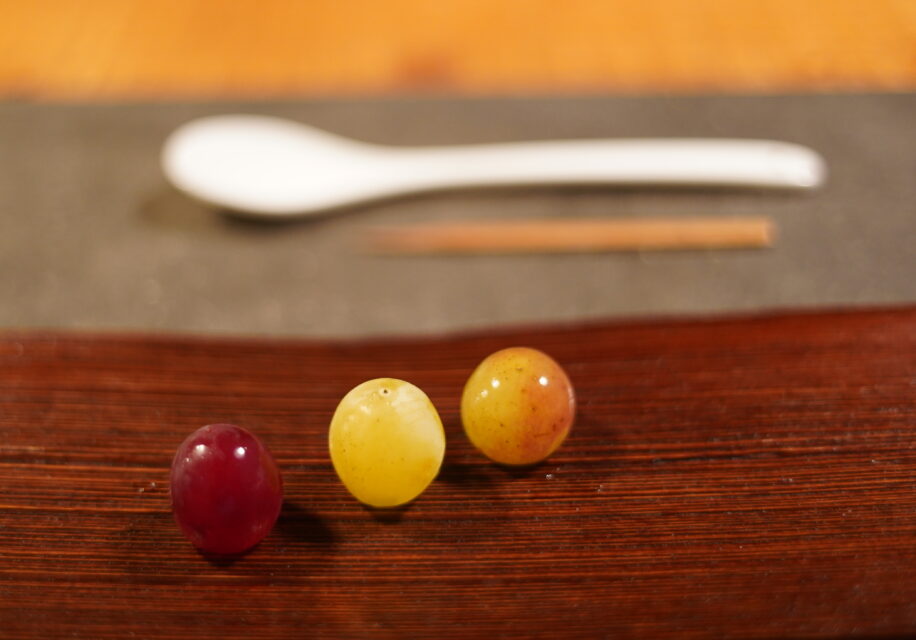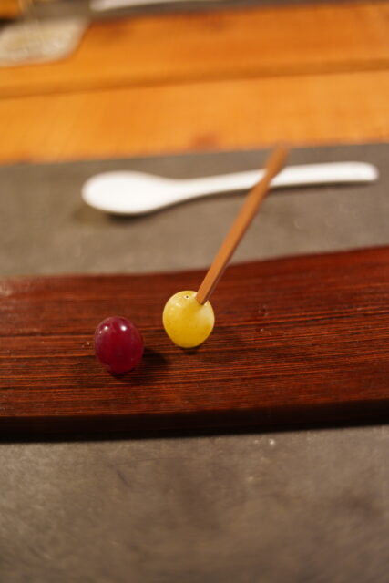 楊子の意味。 2025.09.16 食べ歩き , 1日1甘 , 京都 , 果物 , スィーツ , Tweet 福知山「NOMI」 ぶどう三種 セージ、おうぎょく、やとみローザ 葡萄にストレスなく刺せる楊子を作って