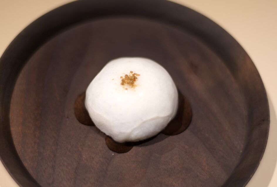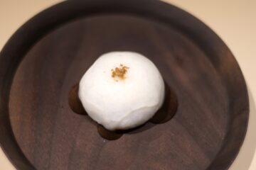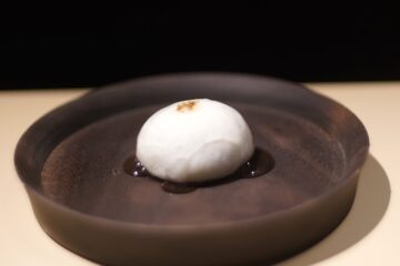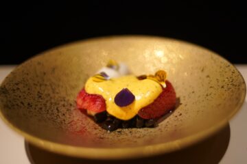 苺パルフェ、大分のサフラン、醤油豆ソースの香ばしさとしょっぱさ