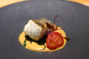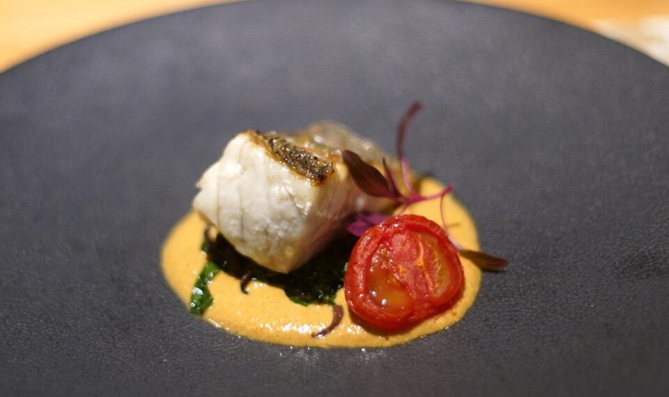 夜 「レゾンス」フレンチ 「鱸の薪焼きと藻屑がにのソース、