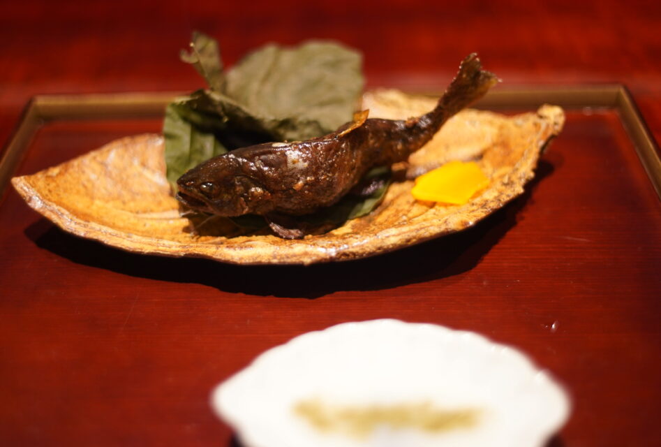 油加えながらじっくりと焼いたアマゴは、本来の猛々