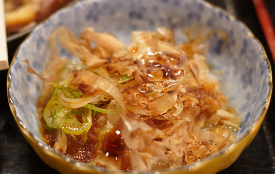 小鉢として、にんじんと大根の煮物、さつま揚げと厚揚げ、昆布の煮物が添えられ、食べ進む合いの手として良き存在である。