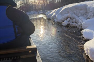 野鳥(白鳥やツグミなど)の声が響き渡る中、カヌー静かに進んでいく。
