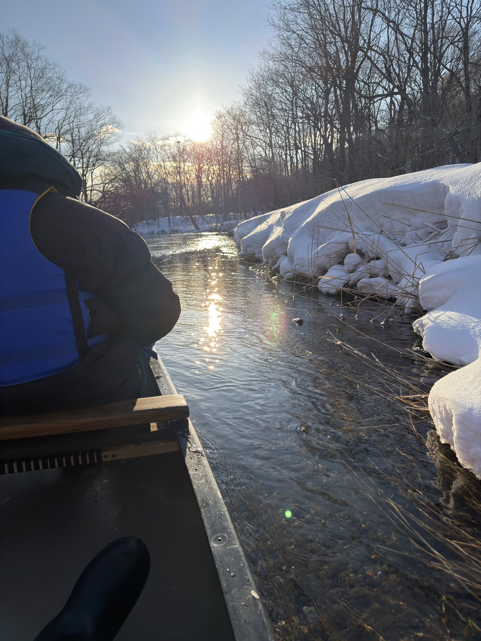 野鳥(白鳥やツグミなど)の声が響き渡る中、カヌー静かに進んでいく。