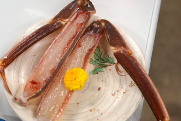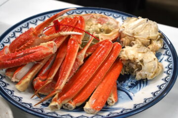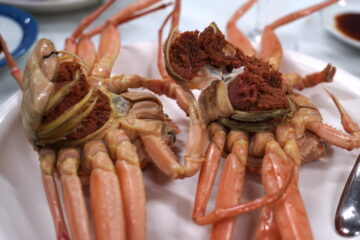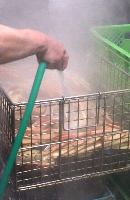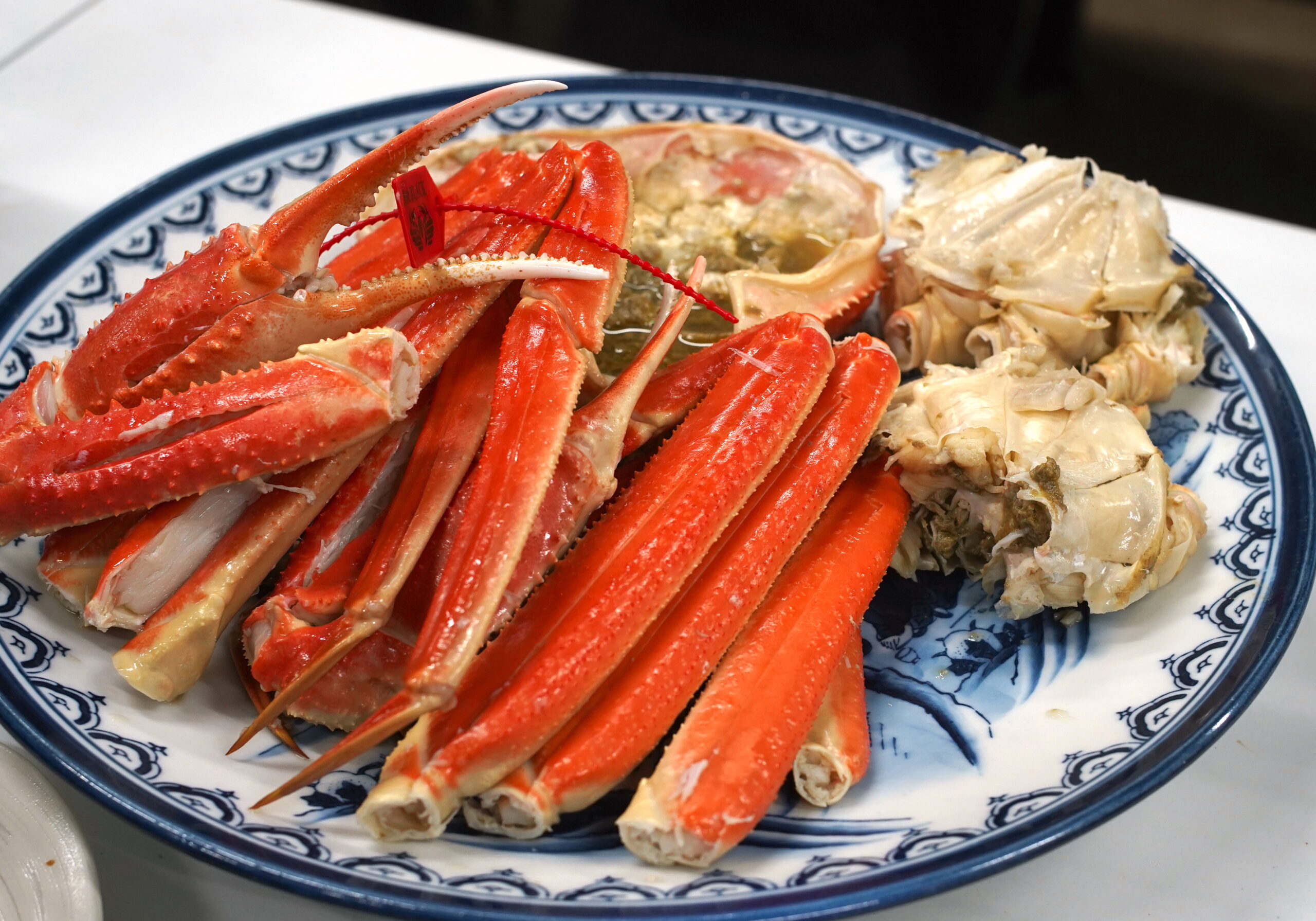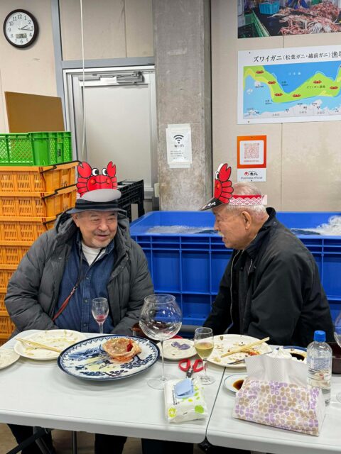 「魚政」ご主人から、カニの詳しい話を聞きながら食べる。