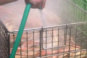何匹も茹でていくが、わざと小さい釜で茹でていく。