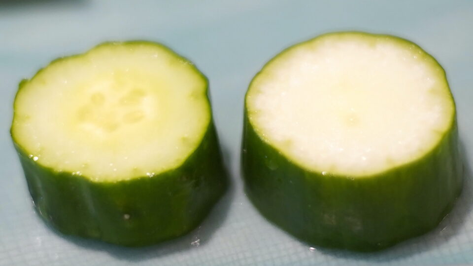 (4枚目のきゅうりの写真を見て欲しい。どちらがスーパーかな?)