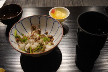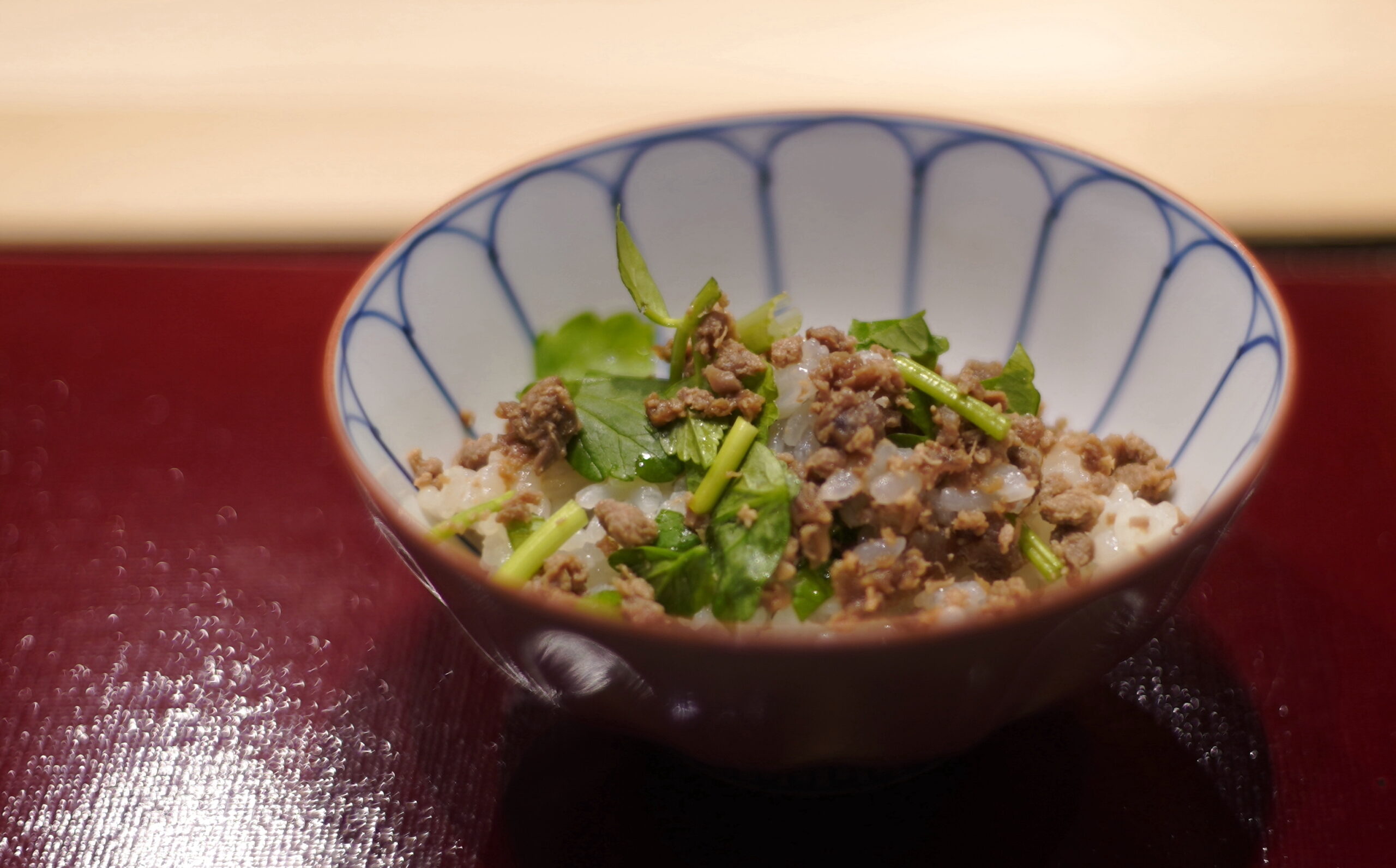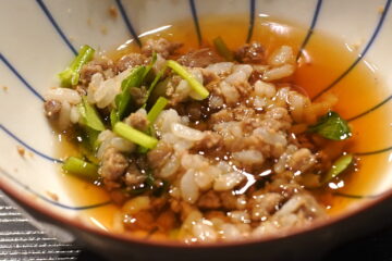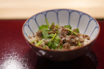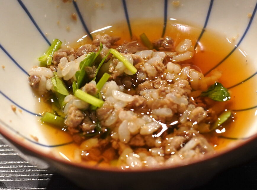 鹿そぼろご飯茶漬け。 2025.12.05 シメご飯 , 食べ歩き , 和食 , 葉茎菜 , 京都 , ご飯料理 , 茶漬け , 鹿 , 宿 , しる汁物 , Tweet ご飯 鹿そぼろご飯 芹 林檎在所漬け 鳥より鉄分感、牛肉より優しい。 留椀 鹿出汁仕立て 最後出汁をかけて茶漬け美味しい。
