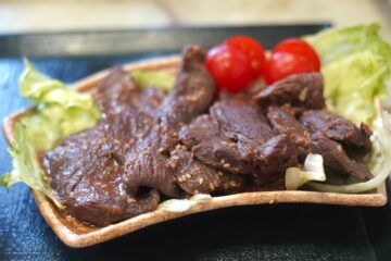 その「蝦夷鹿定食」は厚切りの鹿肉が6切れ分生姜焼きにされ、大ぶりの丼飯とラーメンがつくという、たくさん食べろ攻撃であった。