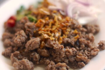 40バンコク「ターシーラット」豚ひき肉の発酵黒オリーブ炒め