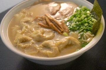 毎朝作る大きなワンタンは、練り肉のうまみに溢れ、ほおばる楽しみがある。